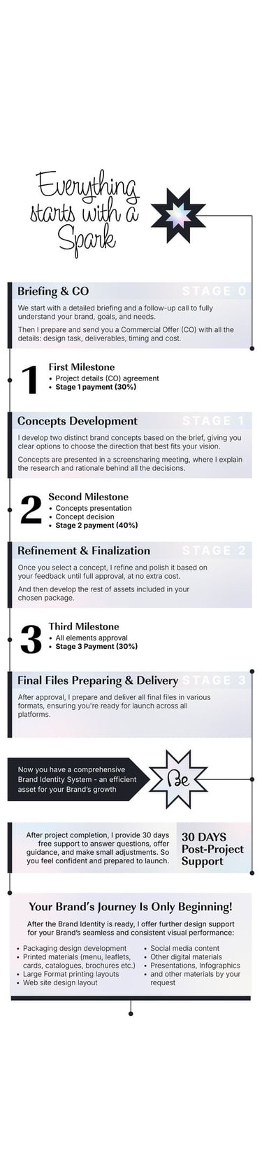 To ensure a smooth and efficient collaboration, I follow a clear and structured process from our first conversation to final delivery. Here’s what you can expect at each stage of our journey together.