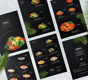 Business cards, leaflets, posters, banners, brochures, gift cards etc.