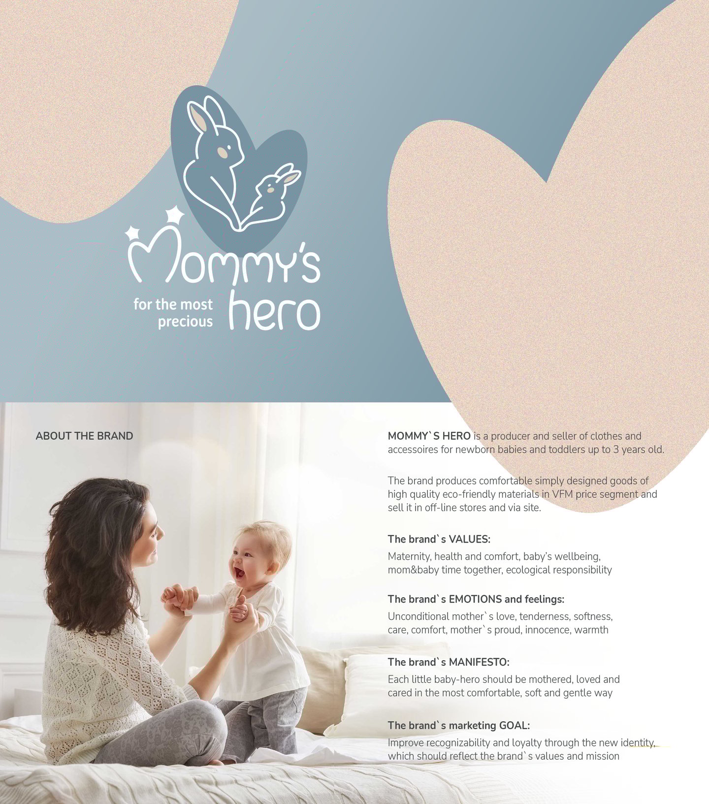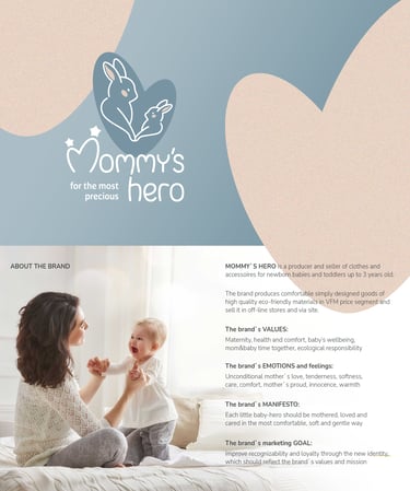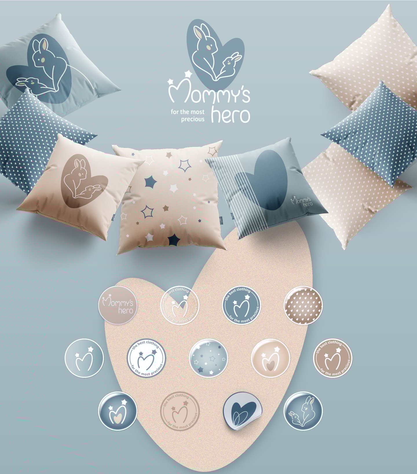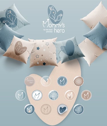 The project began with naming: Mommy’s Hero. The name encapsulates the heart of the brand: every baby is their mother’s little champion, a source of love, laughter, and meaning. This emotional story guided the visual identity, which combines tenderness with playfulness, warmth with trust.